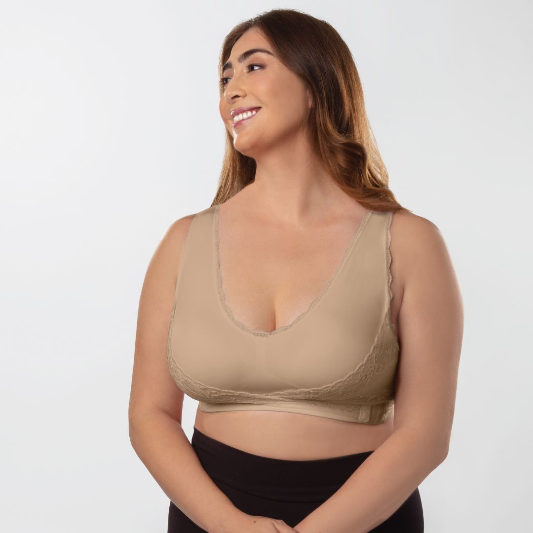 Ovaj grudnjak je izrađen od super-mekane, prozračne tkanine koja omogućuje protok zraka tijekom cijelog dana. Prednja i stražnja mrežasta tkanina omogućuju protok zraka, pružajući idealnu ravnotežu između prozračnosti i udobnosti. Dodatno, grudnjak se kopča sprijeda za još veću praktičnost i jednostavnost nošenja.