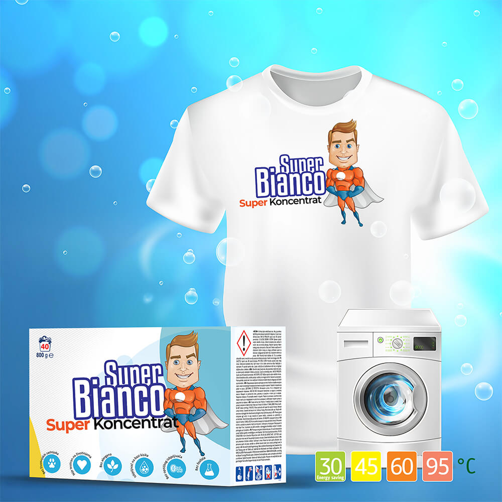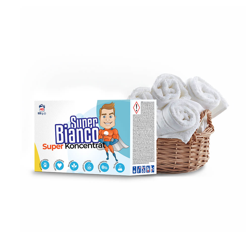 Super Bianco Super Koncentrat je hrvatski deterdžent u prahu koji je siguran za okoliš! Dolazi u koncentriranom obliku, potpuno je biorazgradiv, bez alergena i proizveden po ekološkim standardima. Super Bianco super koncentrirani deterdžent visoko je učinkovit.